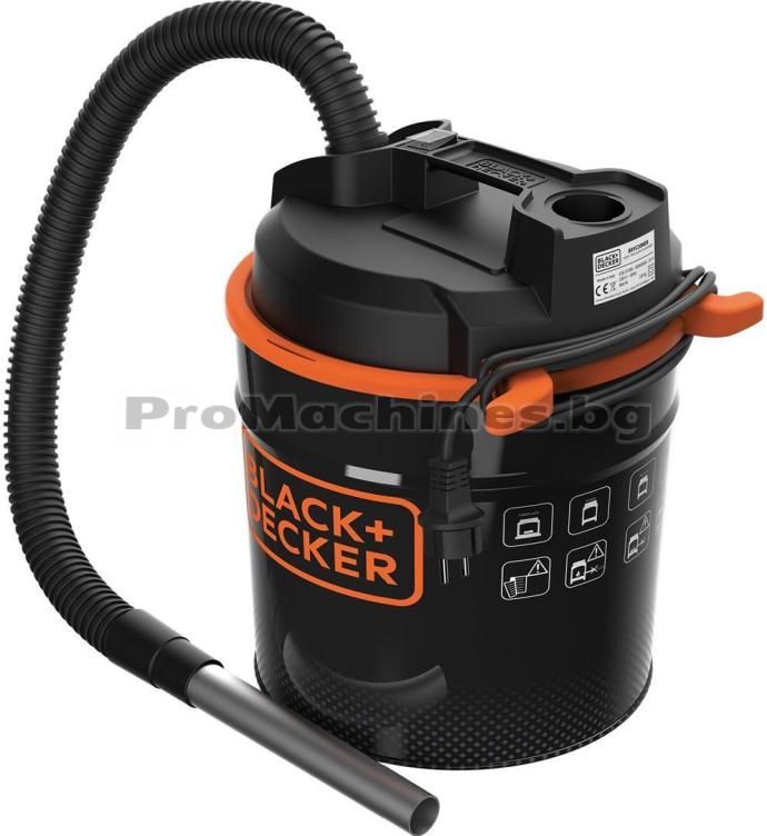 Кабелната прахосмукачка Black&Decker е подходяща за почистване на пепел и строителни отпадъци. Двигателят е защитен от повреди и натрупване на прах, благодарение на механизма НЕРА, който филтрира всички отпадъци. Машината притежава функция вентилатор, която служи за разпалване на огън за барбекю, в камината или печката. Контейнерът за боклук е термоустойчив. Неговата горна част е изработена от устойчива пластмаса, а останалата част е от надеждна неръждаема стомана. Гъвкавият маркуч и алуминиевата дюза на прахосмукачката издържат на високи температури по време на работа.