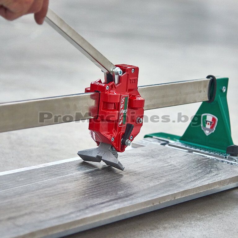 Професионална ръчна машина за рязане на фаянс Battipav Super PRO Evo 125, подходяща за ползване на големи строителни и ремонтни обекти. Тя се справя безпроблемно с фаянсови, теракотени, гранитогресни и други плочи с максимална дължина 1250мм и дебелина 5-19мм. Уредът реже диагонално плочки с размери до 884 х 884мм. Дизайнът на инструмента е еднорелсов, с 9 надеждни лагера, линеал с 2 скали и стабилен ъглов ограничител, който настройва бързо ъгъла при диагонално рязане.