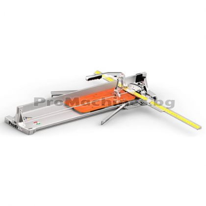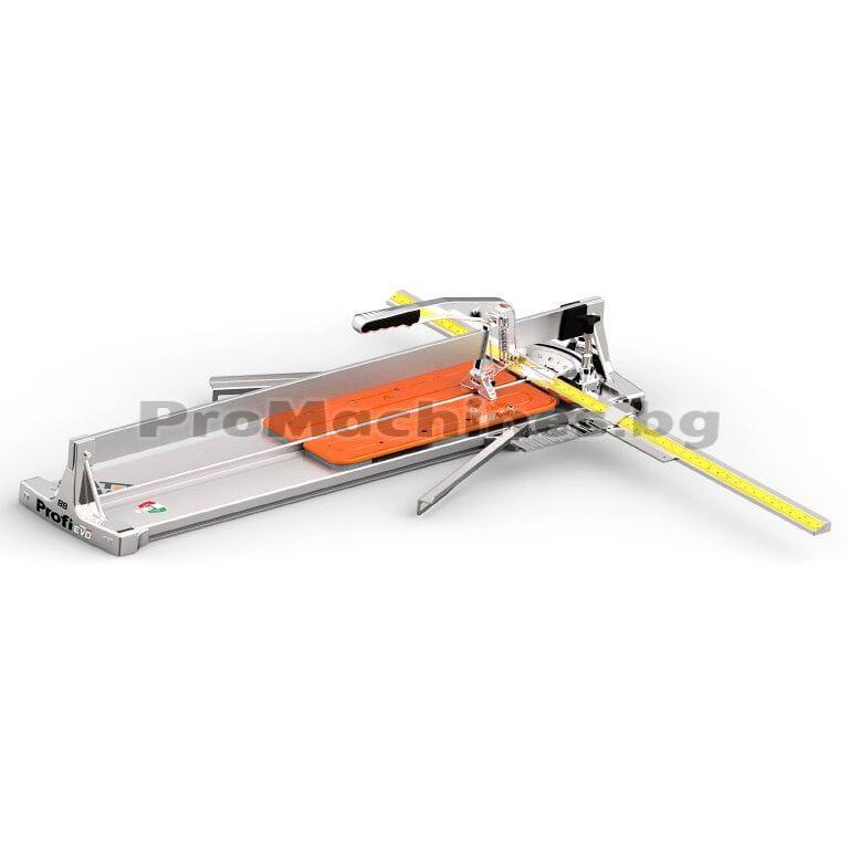 Ръчна професионална машина за рязане на плочки 103см 5-15мм на марката Battipav, подходяща за право и диагонално рязане на керамични плочки и гранитогрес. Инструментът е изработен от устойчив алуминий. Машината има стабилна основа, която е тип моноблок, върху която сантиметровата скала е разположена така, че потребителят да има отлична видимост, без допускане на грешка, тъй като плочката остава на същото ниво на скалата. Работният плот е оборудван с крачета със специални пружини, които са по 4 за всяка страна, с което се осигурява бързо счупване на нарязаната плочка. Чупещият крак на машината е направен от алуминий и е с бяла гумена защита в основата, която елиминира риска от надраскване на повърхността на плочката при счупването. Той е с вграден магнит, който улеснява рязането и счупването на плочката да става с една ръка. Максималната дължина на плочката за рязане е 1030мм, а при диагонално рязане е в диапазона 720 х 720мм.