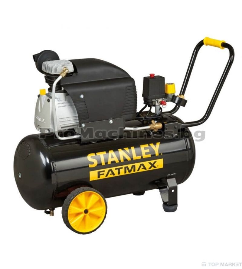 Компресор за въздух Stanley D211/10/50S с капацитет на съда 50 литра и дебит на входа 240 л/мин. Моделът е с мощност 2.5 к.с. /1.8 kW и максимално налягане 10 bar. Оборотите на машината са 2850 об/мин.