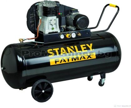 Въздушен маслен компресор Stanley с капацитет 270л 10bar 480л/мин. Моделът е с мощност 4 HP /3 kW трифазен и се задвижва с ремък. Чугунените цилиндри на машината подсигуряват нейния максимално дълъг експоатационен живот. За по-лесното придвижване на уреда са налични дълга дръжка, големи задни колела и по-малки предни. Компресорът притежава вграден панел за управление.