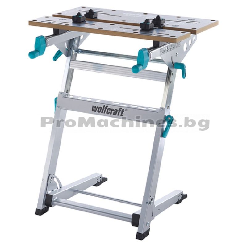 Wolfcraft Master 700 е ергономична многофункционална работна и стягаща маса, която може да се ползва и като маса за инструменти. MDF плотът е с дебелина 19мм и може да накланя безсепенно от 0 до 70 градуса. Той позволява монтаж на потапящи и скосяващи циркуляри, както и на стойки за бормашини. Между дървените плотове на работната повърхност могат да бъдат монтирани работни детайли с широчина на стягане до 13см. Наличието на стягащи челюсти позволява прилагането на по-големи широчини на стягане до 43.5см. Масата има възможност за пружинно безстепенно регулиране на височината, така че да отговаря на височината на оператора. Моделът се сгъва компактно и не заема излишно място в домашната работилница. Wolfcraft Master 700 е с тованосимост до 150 кг.