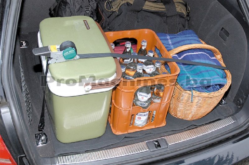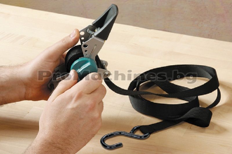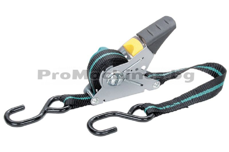 Лентова стяга с кука 400см, подходяща за бързо фиксиране с едно движение, без многократни навивания. Моделът разполага с лентонавиващ механизъм, който не позволява усукване на лентата. Стягата е съобразена със стандарт DIN EN 12195-2:2001-02.