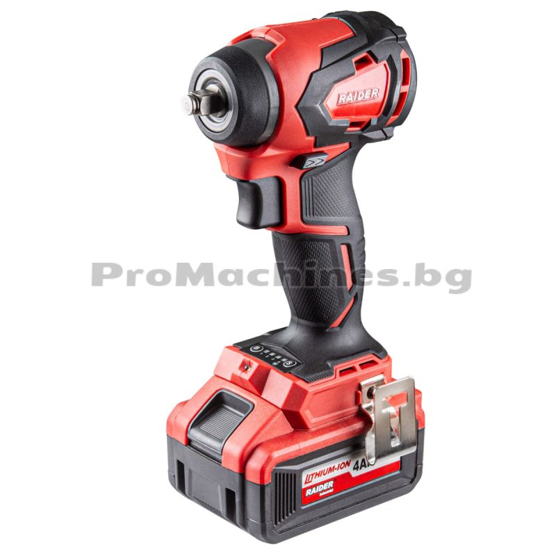 Гайковерт Raider RDI-IBW03 е високоефективен инструмент, задвижван от безчетков електродвигател, който предоставя изключителна мощ и функционалност. С компактни размери на корпуса, този гайковерт е лесен за манипулиране и подходящ за различни работни среди. Основните характеристики включват реверс функция и 4-степенен регулатор на оборотите и въртящия момент. Това позволява на потребителя да настрои интензивността на въртене в зависимост от конкретната задача. LED осветлението осигурява ярка светлина в работната зона, улеснявайки прецизната работа при намалена осветеност. Гайковертът е оборудван с дисплей, който показва нивото на заряд на включената в комплекта 4Ah батерия, предоставяйки информация за времето на работа и нуждата от презареждане. Щипката за колан и допълнителният адаптер от 3/8" към 1/2", включени в комплекта, правят инструмента удобен за пренос и употреба в различни ситуации. Доставя се в куфар заедно с 4Аh батерия и зарядно устройство.