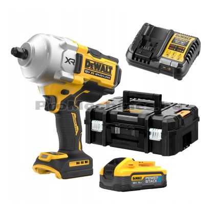 DeWalt DCF961H1T е мощен и надежден безчетков гайковерт с напрежение от 18V, предоставящ 4 степенен контрол върху затягането и развиването на болтове и гайки. Този инструмент се отличава с максимален въртящ момент при затягане от 1626Nm и при отвиване от 2372Nm, позволявайки ви да се справяте с най-трудните задачи. Със скорост на празен ход, която може да варира от 0 до 1200 об./мин и впечатляваща честота на ударите от 0 до 1890 уд./мин, този гайковерт ви дава гъвкавост и контрол, когато работите с разнообразни материали и приложения. Четири секунди след като работи в режим на отвиване се усилва мощността за да достави повече сила и да развие болта или гайката. В режим "прецизно затягане" можете да бъдете сигурни, че няма да получите презатягане или скъсване на винт, гайка или болт. Четирите режима на работа се сменят лесно и интуитивно, а вграденото LED осветление е допълнителна помощ и удобство при работа. Със стандартен присъединителен размер от 1/2" и гумирана защита, този гайковерт е съвместим с различни аксесоари и вложки, което прави вашата работа още по-удобна. Капацитета на батерията от комплекта е 5Ah, което ще ви позволи да работите дълго време с машината без презареждане. Доставя се заедно с 1 бр. 5Ah PowerStack батерия и зарядно устройство в TSTAK куфар.