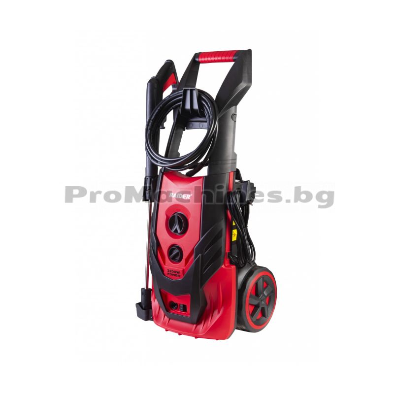 Водоструйката на Raider има мощен 2200 W мотор. Уредът разполага с ергономична ръкохватка и колела за добра мобилност. Машината безпроблемно отмива мръсни повърхности. Моделът разполага с Easy Click система за лесно съхранение на аксесоари, както и с Quick Connect система за бързо прикачване на маркуча. Уредът е подсигурен с пистолет за пръскане, накрайник за пистолет на водоструйка и маркуч за високо налягане.